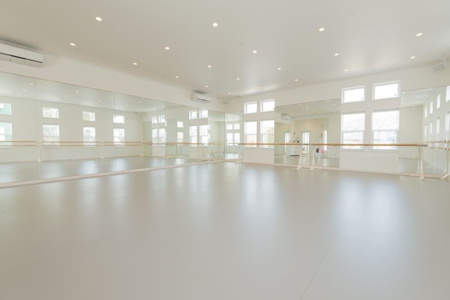 リフトの練習まで可能な高い天井、広々とした鏡、機能性・デザイン性を考慮した照明、優れた音響環境と空調調節、バーの完備で快適なスタジオ空間となっております。