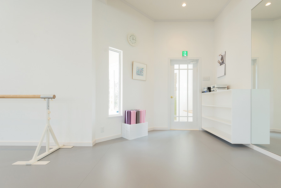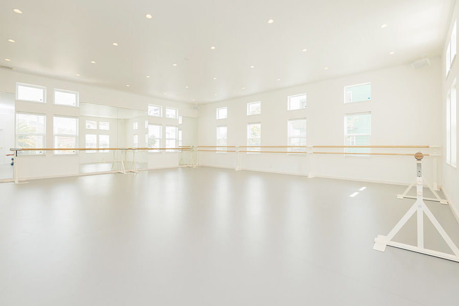 長時間使用しても身体に負担のない床設計で、表面はバレエに適した弾力性・防滑性の高いリノリューム床です。